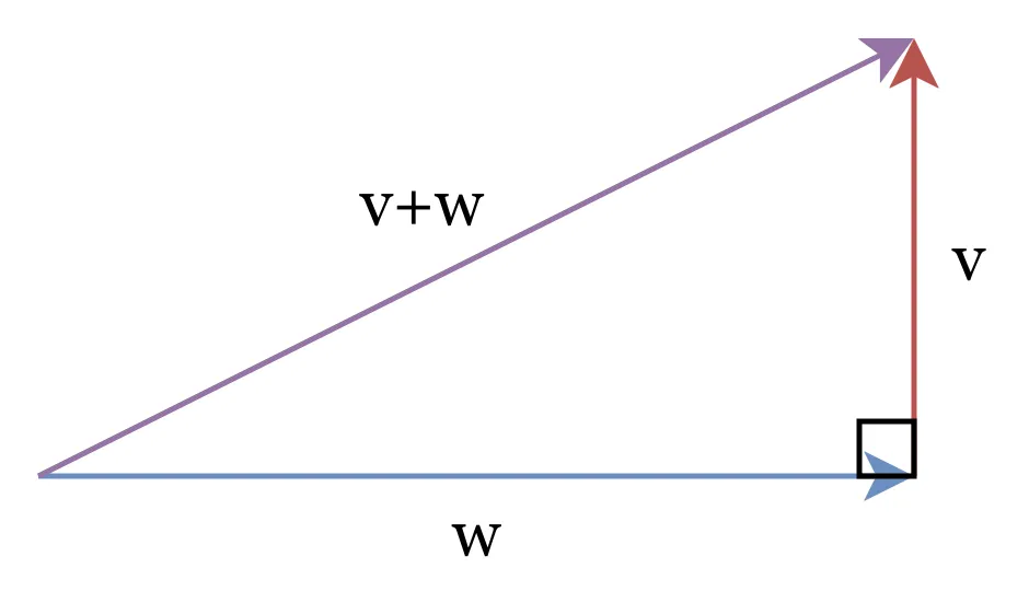 If the vectors v and w are perpendicular, their magnitudes satisfy the Pythagorean Theorem when added together: